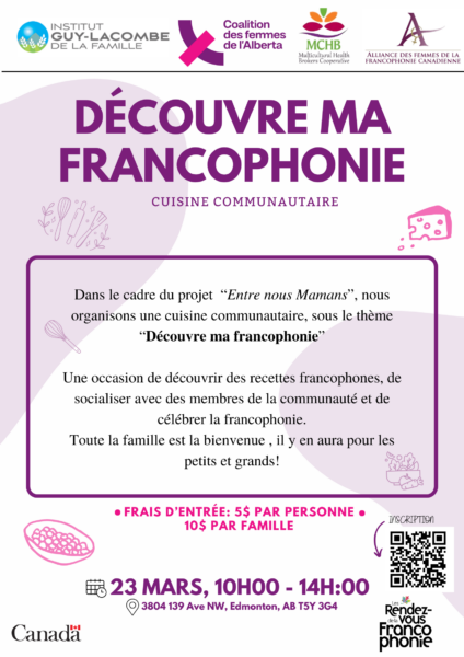 Une occasion de découvrir des recettes francophones, de socialiser avec des membres de la communauté et de célébrer la francophonie.