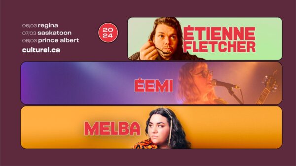 Le Conseil culturel fransaskois et la Société canadienne française de Prince Albert sont fiers de présenter le spectacle des trois artistes ÉTIENNE FLETCHER, ÉEMI ET MELBA.