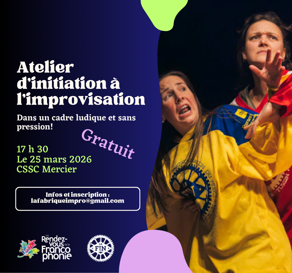2ème festival de slam au Manitoba (en français).Venez découvrir un spectacle original avec les magnifiques textes de nos slameur.e.s francophones dans une ambiance sportive déchainée. Le festival se déroule au Centre culturel franco-Centre Culturel Franco-Manitobain – CCFMsalle Antoine-Gaborieau340 Provencher Boulevard Winnipeg, Manitoba R2H 0G7 Programme du jeudi 19 mars 2026 : 18h30-19h00 : accueil 19h00-20h30 […]
